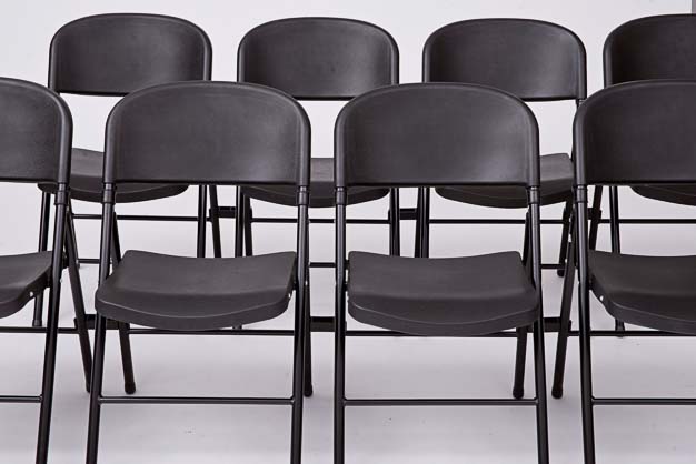 Ein idealer Stuhl, Klappstuhl für Vorträge, Konferenzen, Tagungen, Schulungen in Reihenbestuhlung, Seminaren, sowie für Konzerte und Events aller Art, Indoor wie Outdoor.