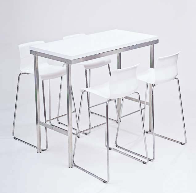 Set 1x Brückentisch weiß 120×60, 4x Barhocker mit Lehne weiß
